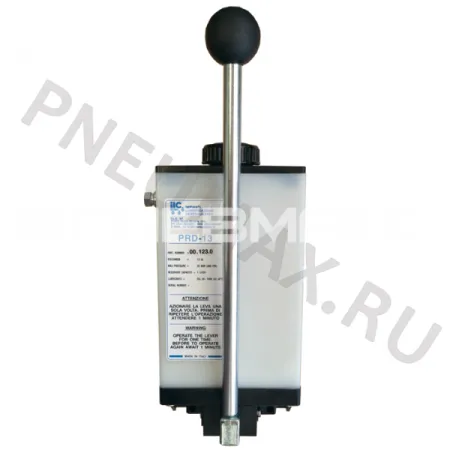 Станция с ручным приводом для жидкой смазки, бак 1л, 13см3/цикл, 35бар, выходы М12х1 под трубку 6мм слева и справа