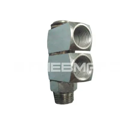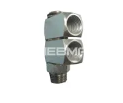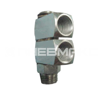 Угловой двухуровневый поворотный фитинг на два выхода, 50 бар, R1/8" - 2 отвода М10х1 (сталь)