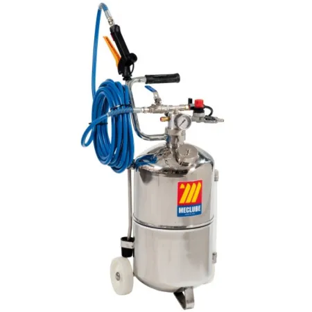 Пеногенератор из нержавеющей стали с емкостью 24 л. Предназначен для работы с агрессивными и химическими жидкостями. При заполнении бака 3/4 от всего объема и установлении давления в 6-8 бар, оборудование может работать автономно без компрессора. Корпус манометра изготовлен из нержавеющей стали, фитинги из нержавеющей стали AISI 316. Пеногенератор оснащен уплотениями из витона.