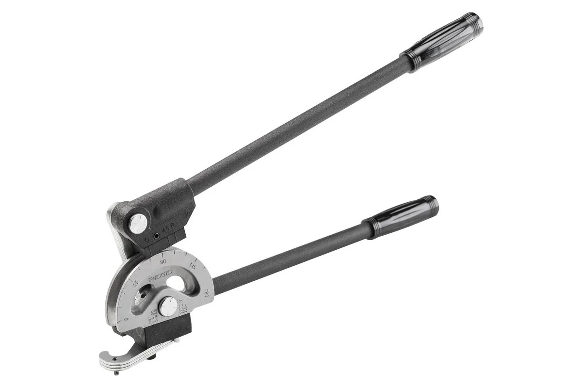 RIDGID 314M 36952 — ручной рычажный трубогиб для гибки труб наружным диаметром 14 мм. Инструмент предназначен для работы с отожжённой медью и цветными металлами, широко применяется при монтаже сантехнических, пневматических и гидравлических систем. Обеспечивает гиб до 180°, позволяя формировать сложные участки трубопроводов без использования фитингов.