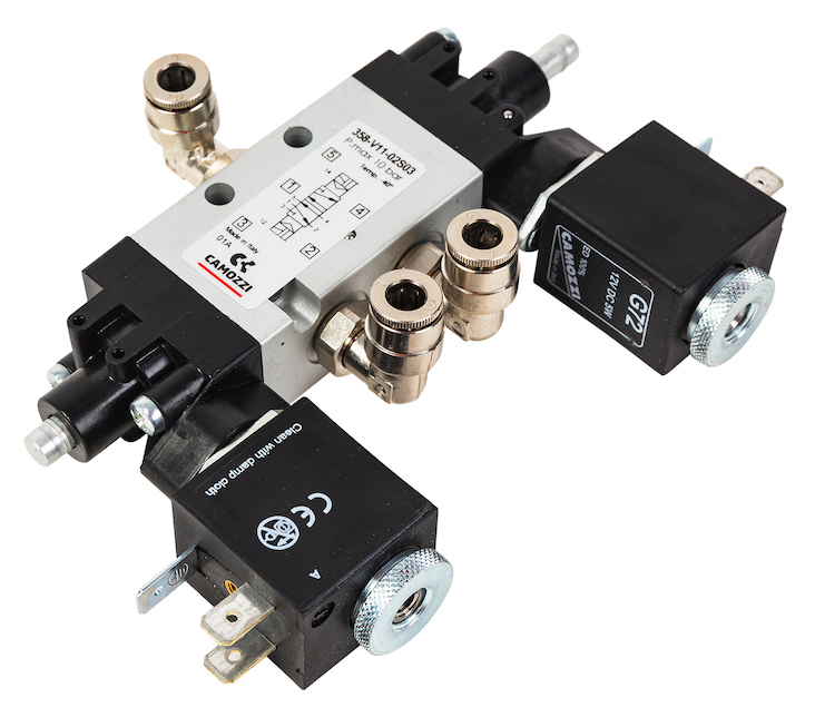 Электропневматические распределители 358-V11-02 предназначены для управления дверьми колёсных транспортных средств – автобусы и троллейбусы. Специальное исполнение включает ручные дублёры, напрямую воздействующие на золотник.