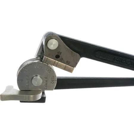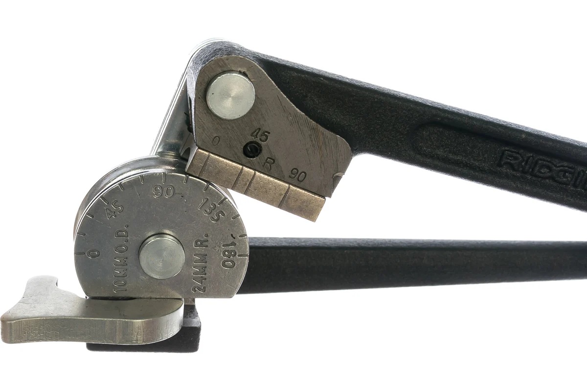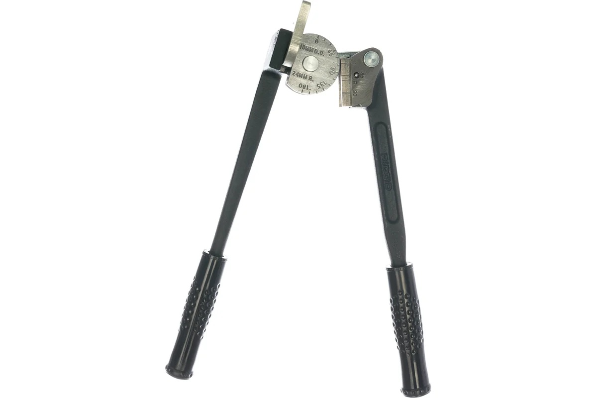 RIDGID 410M 36102 — ручной рычажный трубогиб для точной гибки труб наружным диаметром 10 мм. Инструмент предназначен для работы с отожжённой медью, а также стальными и нержавеющими трубками с толщиной стенки до 1,5 мм. Обеспечивает гиб до 180°, что позволяет формировать сложные трассы без использования фитингов.