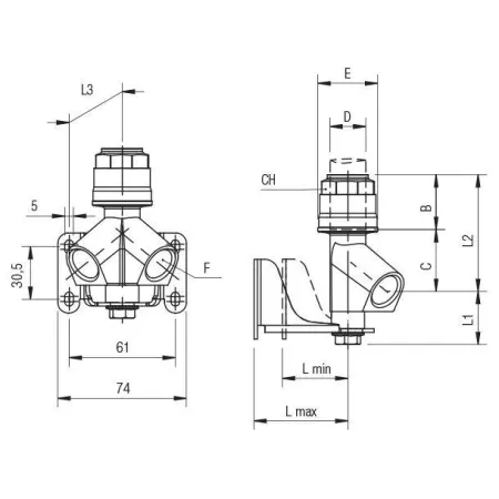ПОДКЛЮЧЕНИЕ НАСТЕННОЕ НАКЛОННОЕ 2-МЕСТНОЕ С ВНУТРЕННЕЙ РЕЗЬБОЙ - INOX316L AIGNEP 90660X0001