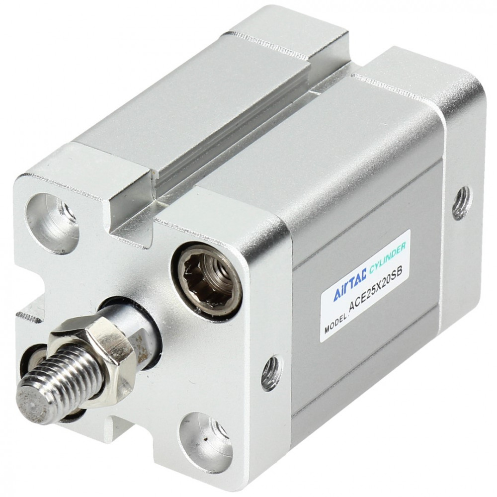 Цилиндры одностороннего действия имеют только одно отверстие пневматического подключения. Движение под действием сжатого воздуха осуществляется в одну сторону, возврат осуществляется при помощи пружины. Таким образом, для управления таким цилиндром требуется всего один пневматический сигнал.