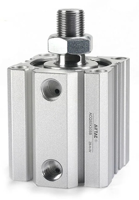 Цилиндры двустороннего действия имеют два отверстия для подвода сжатого воздуха – для выдвижения и втягивания штока соответственно.