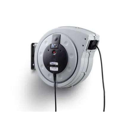 Автоматическая катушка с кабелем питания 35 м и вилкой SCHUKO. Питание 230 В. Корпус катушки изготовлен из пластика. Тип кабеля H05VV. На катушке установлен ограничитель движения кабеля с легким доступом к храповому механизму.