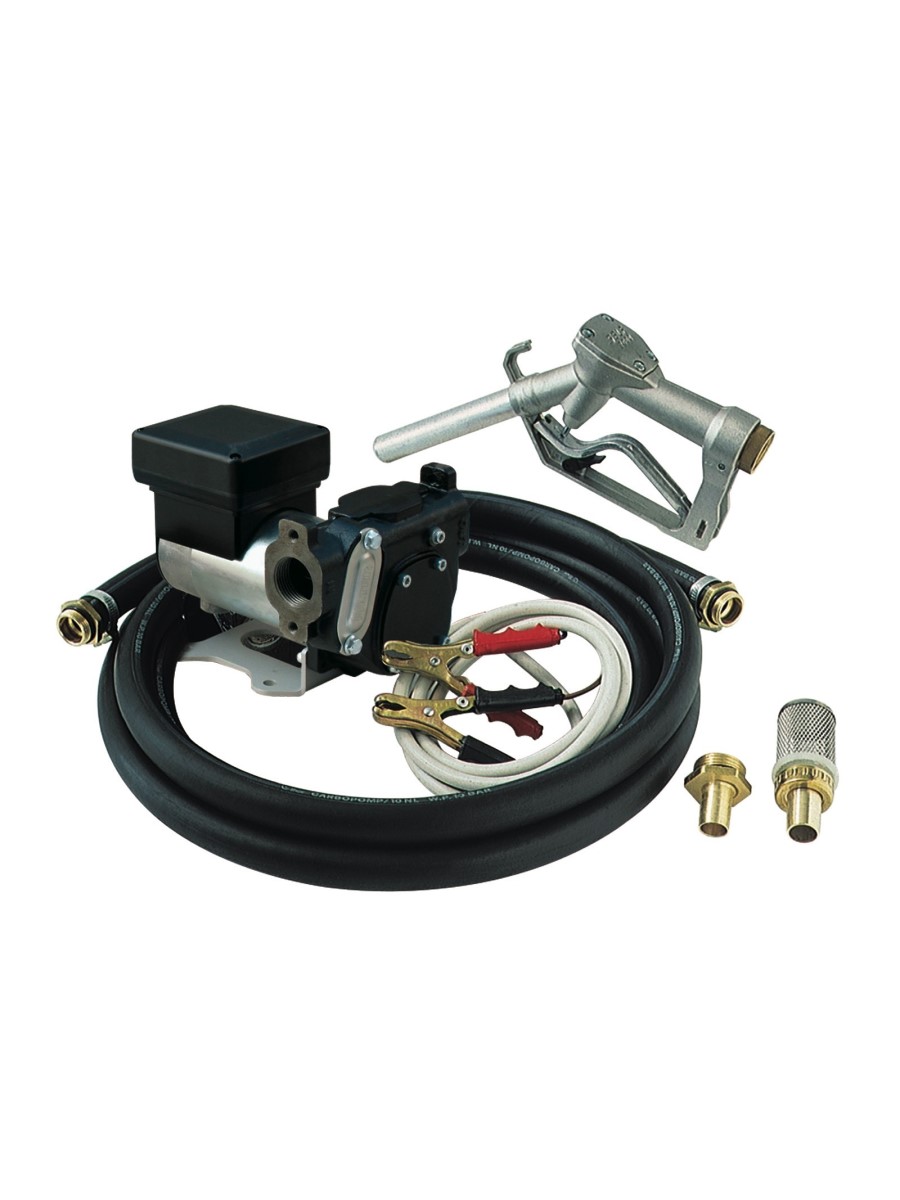 Портативный переносной перекачивающий блок для дизельного топлива. Оснащен самозаправляющимся шиберным насосом с электродвигателем на 12 В постоянного тока. Имеет чугунный корпус. Оснащен щеточным электродвигателем и статором с постоянными магнитами. Напор всасывания топлива до 2-х м. Имеется колодка зажимов с переключателем и плавкими предохранителями для защиты от перегрузки, а также 2-х метровый кабель с зажимами для подключения к аккумуляторной батарее. Топливораздаточный рукав - 4 м, диаметр 3/4”. Алюминиевый топливораздаточный кран. Донный всасывающий фильтр.