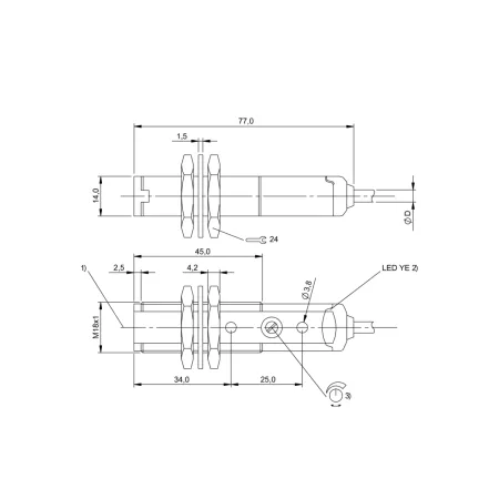 Дискретный выход: PNP • Диапазон измерения: 60000 мм • Электрическое подключение: кабель • Длина кабеля: 2м • Крепежная резьба: M18x1 • Рабочее напряжение: 12 ÷ 24 V DC • Материал корпуса: пластик