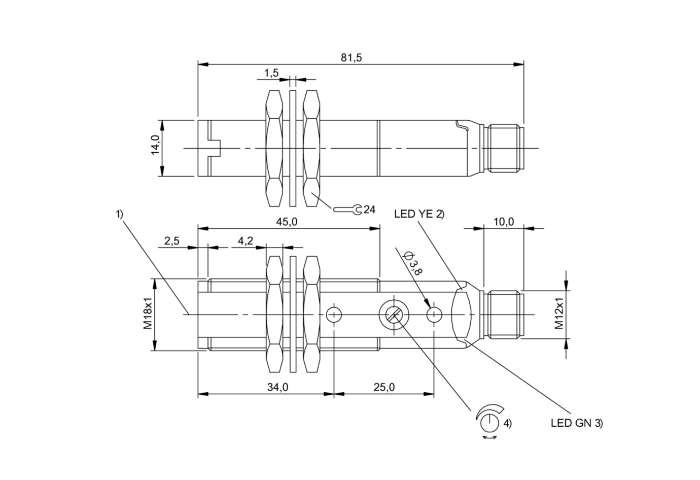 Дискретный выход: PNP • Диапазон измерения: 20000 мм • Электрическое подключение: разъём M12x1 • Крепежная резьба: M18x1 • Рабочее напряжение: 12 ÷ 24 V DC • Материал корпуса: пластик