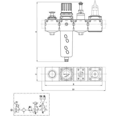 Регулировка давления, верхний предел: 10бар • Степень фильтрации: 5 мкм • Отвод конденсата: полуавтоматический (при сбросе давления)/ручной • Стандартный номинальный расход: 4950л/мин • Типоразмер: MC2 • Подключение: G1/2 • Материал корпуса: латунь;полимер;сплав цинк-алюминий-магний-медь (ЦАМ)