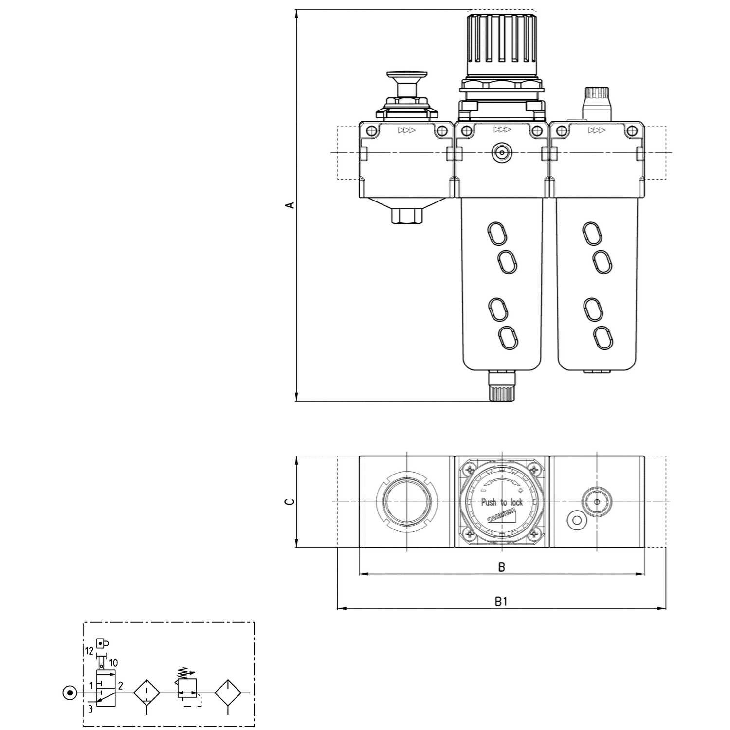 Регулировка давления, верхний предел: 10бар • Степень фильтрации: 5 мкм • Отвод конденсата: полуавтоматический (при сбросе давления)/ручной • Стандартный номинальный расход: 4800л/мин • Типоразмер: MC2 • Подключение: G3/8 • Материал корпуса: латунь;полимер;сплав цинк-алюминий-магний-медь (ЦАМ)