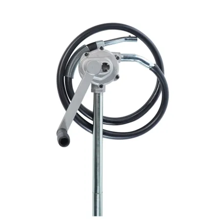 Роторный редукторный насос 3:1 для перекачки дизельного топлива, керосина и бензина. За один цикл ротор совершает 3 оборота. Производительность насоса составляет 1 л/ход. Подходит для использования с бочками 50-205 л. Укомплектован рукавом 3/4" x 1,8 м с металлическим патрубком и адаптером для бочек 2". Применяемые компоненты: алюминий, сталь, ПВХ-нитрил, цинк, бутандиен-нитрильный каучук