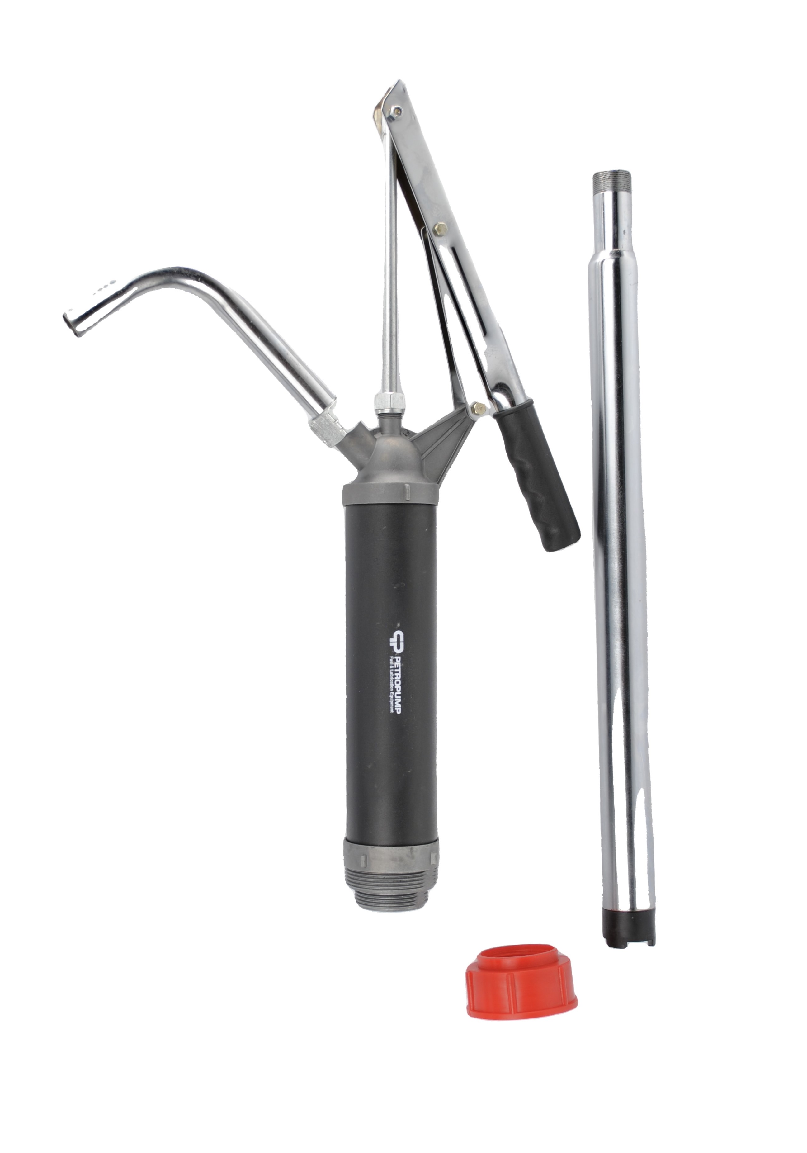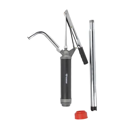 Ручной рычажный насос для перекачки масла, ДТ и керосина. Подходит для использования с бочками объемом 50-205 л. Производительность составляет до 0,3 л/мин. Оснащен бочковыми адаптерами 1 1/2" и 2", изогнутым носиком и телескопической всасывающей трубкой.