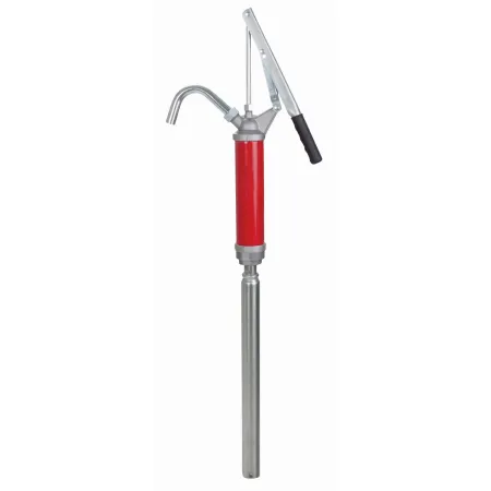 Ручной рычажный насос для перекачки масла, ДТ и керосина. Подходит для использования с бочками объемом 50-250 л. Оснащен изогнутым носиком, бочковыми адаптерами 1 1/2" и 2" и телескопической всасывающей трубкой. Используемые материалы: сталь, алюминий, цинк, латунь, бутадиен-нитрильный каучук