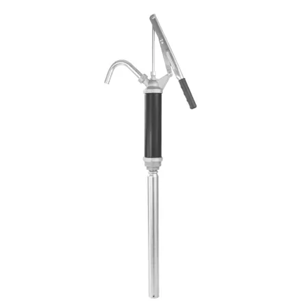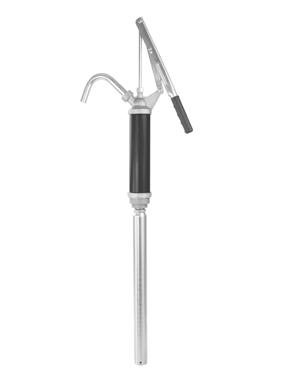Ручной рычажный насос для перекачки масла, ДТ и керосина. Подходит для использования с бочками объемом 50-250 л. Производительность состалвяет до 0,3 л/ход.Оснащен изогнутым носиком, бочковыми адаптерами 1 1/2" и 2" и телескопической всасывающей трубкой. Используемые материалы: сталь, алюминий, цинк, латунь, бутадиен-нитрильный каучук