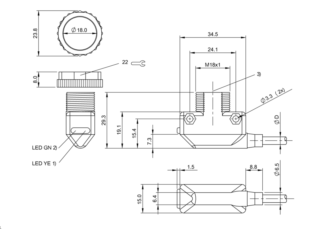 - датчик типа световой барьер: приемник