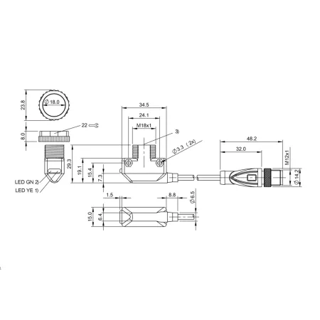 Дискретный выход: PNP • Диапазон измерения: 50 мм • Электрическое подключение: разъём M12x1 • Длина кабеля: 0.15м • Рабочее напряжение: 12 ÷ 24 V DC • Материал корпуса: пластик