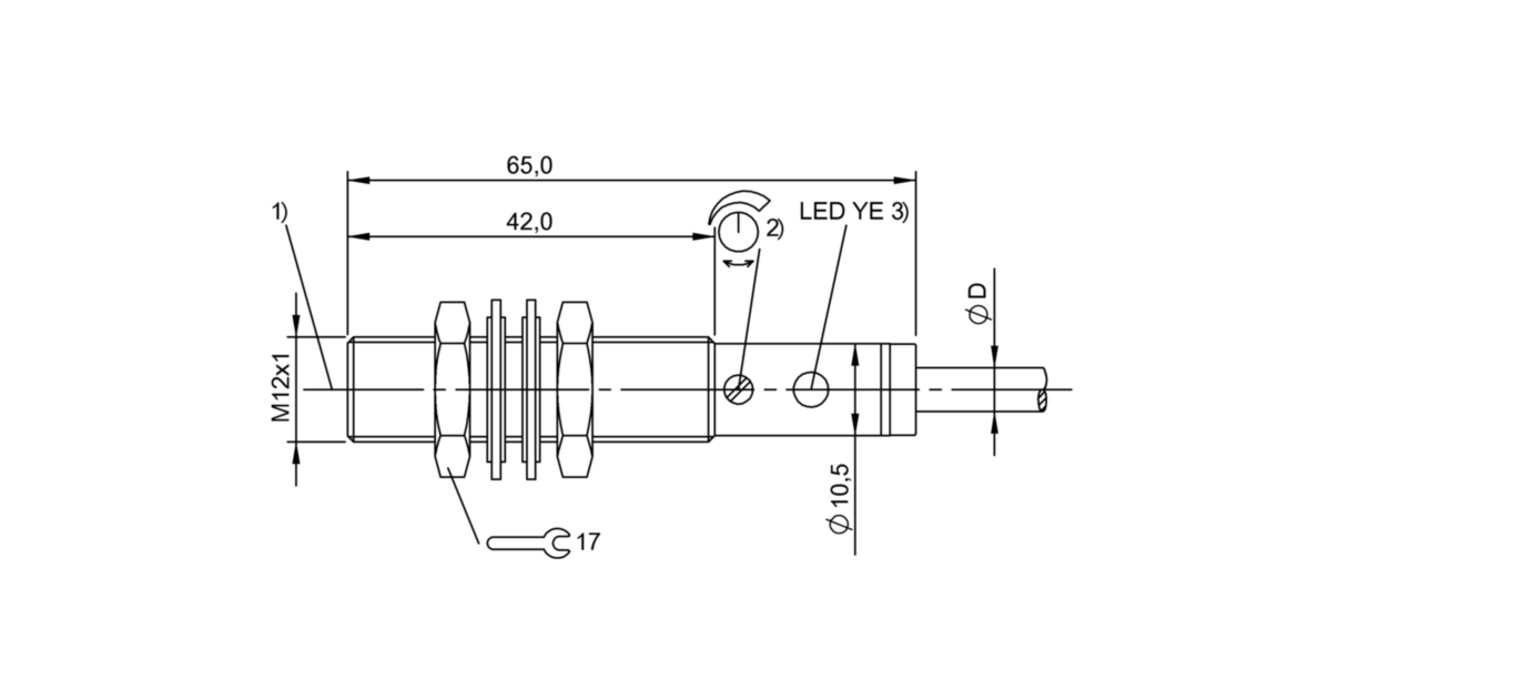 Дискретный выход: PNP • Диапазон измерения: 30000 мм • Электрическое подключение: кабель • Длина кабеля: 3м • Крепежная резьба: M12x1 • Рабочее напряжение: 12 ÷ 24 V DC • Материал корпуса: латунь