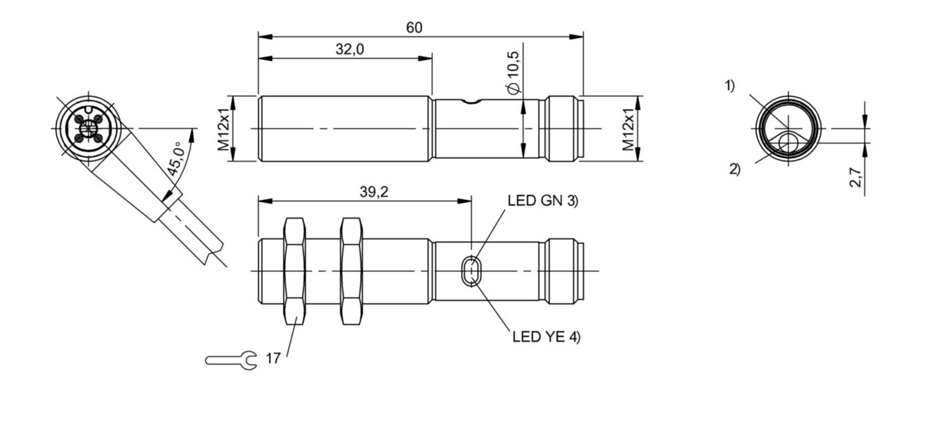 Дискретный выход: PNP • Диапазон измерения: 50 мм • Исполнение: с подавлением заднего фона • Электрическое подключение: разъём M12x1 • Крепежная резьба: M12x1 • Рабочее напряжение: 12 ÷ 24 V DC • Материал корпуса: латунь