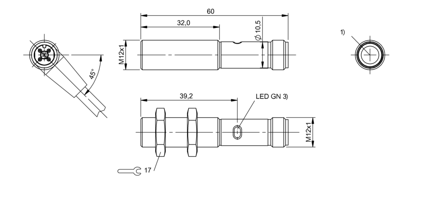 Диапазон измерения: 8000 мм • Электрическое подключение: разъём M12x1 • Крепежная резьба: M12x1 • Рабочее напряжение: 12 ÷ 24 V DC • Материал корпуса: латунь