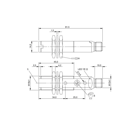 Дискретный выход: NPN • Диапазон измерения: 350 мм • Электрическое подключение: разъём M12x1 • Крепежная резьба: M18x1 • Рабочее напряжение: 12 ÷ 24 V DC • Материал корпуса: пластик