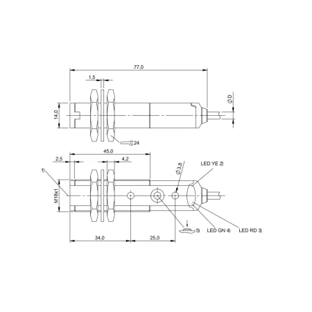 Дискретный выход: PNP • Диапазон измерения: 100 мм • Исполнение: с подавлением заднего фона • Электрическое подключение: кабель • Длина кабеля: 2м • Крепежная резьба: M18x1 • Рабочее напряжение: 12 ÷ 24 V DC • Материал корпуса: пластик