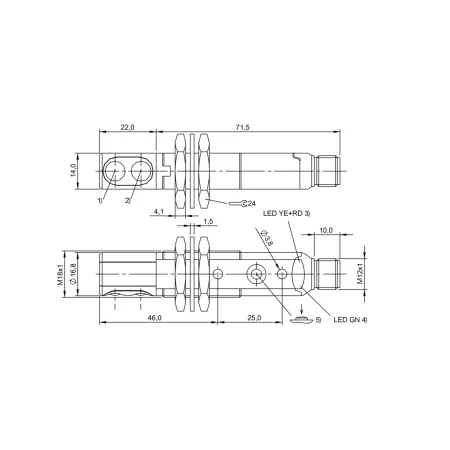 Дискретный выход: NPN • Диапазон измерения: 100 мм • Исполнение: с подавлением заднего фона • Электрическое подключение: разъём M12x1 • Крепежная резьба: M18x1 • Рабочее напряжение: 12 ÷ 24 V DC • Материал корпуса: пластик