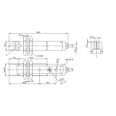 Дискретный выход: NPN • Диапазон измерения: 250 мм • Электрическое подключение: кабель • Длина кабеля: 2м • Крепежная резьба: M18x1 • Рабочее напряжение: 12 ÷ 24 V DC • Материал корпуса: пластик