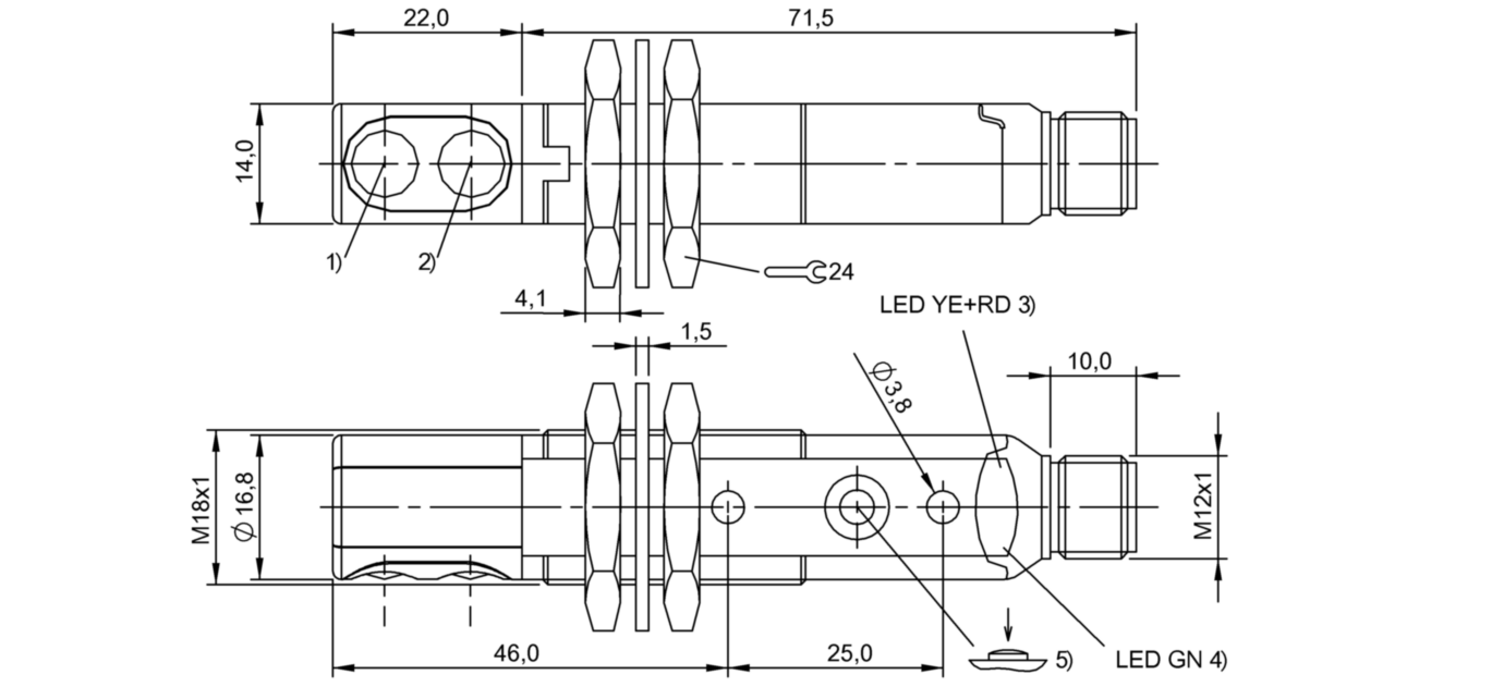 Дискретный выход: PNP • Диапазон измерения: 100 мм • Исполнение: с подавлением заднего фона • Электрическое подключение: разъём M12x1 • Крепежная резьба: M18x1 • Рабочее напряжение: 12 ÷ 24 V DC • Материал корпуса: пластик