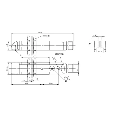 Диапазон измерения: 9000 мм • Электрическое подключение: разъём M12x1 • Крепежная резьба: M18x1 • Рабочее напряжение: 12 ÷ 24 V DC • Материал корпуса: пластик