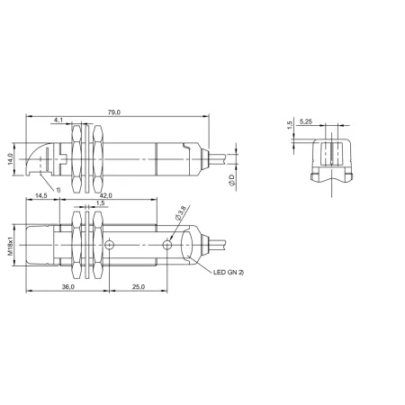 Дискретный выход: PNP • Диапазон измерения: 80 мм • Электрическое подключение: кабель • Длина кабеля: 2м • Крепежная резьба: M18x1 • Рабочее напряжение: 12 ÷ 24 V DC • Материал корпуса: пластик