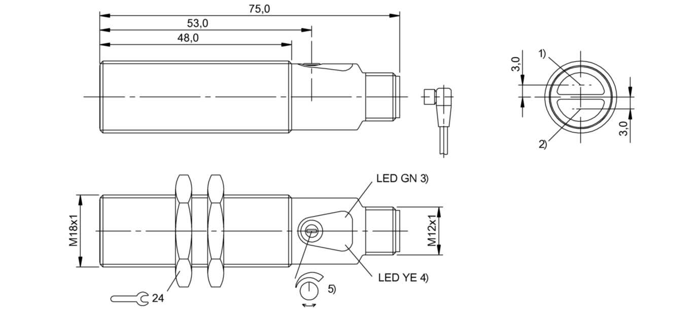 Дискретный выход: NPN • Диапазон измерения: 10000 мм • Электрическое подключение: разъём M12x1 • Крепежная резьба: M18x1 • Рабочее напряжение: 12 ÷ 24 V DC • Материал корпуса: металл