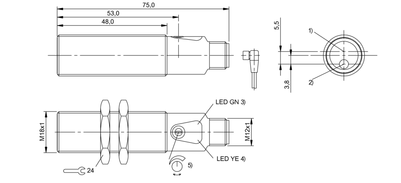 Диапазон измерения: 16000 мм • Электрическое подключение: разъём M12x1 • Крепежная резьба: M18x1 • Рабочее напряжение: 12 ÷ 24 V DC • Материал корпуса: металл