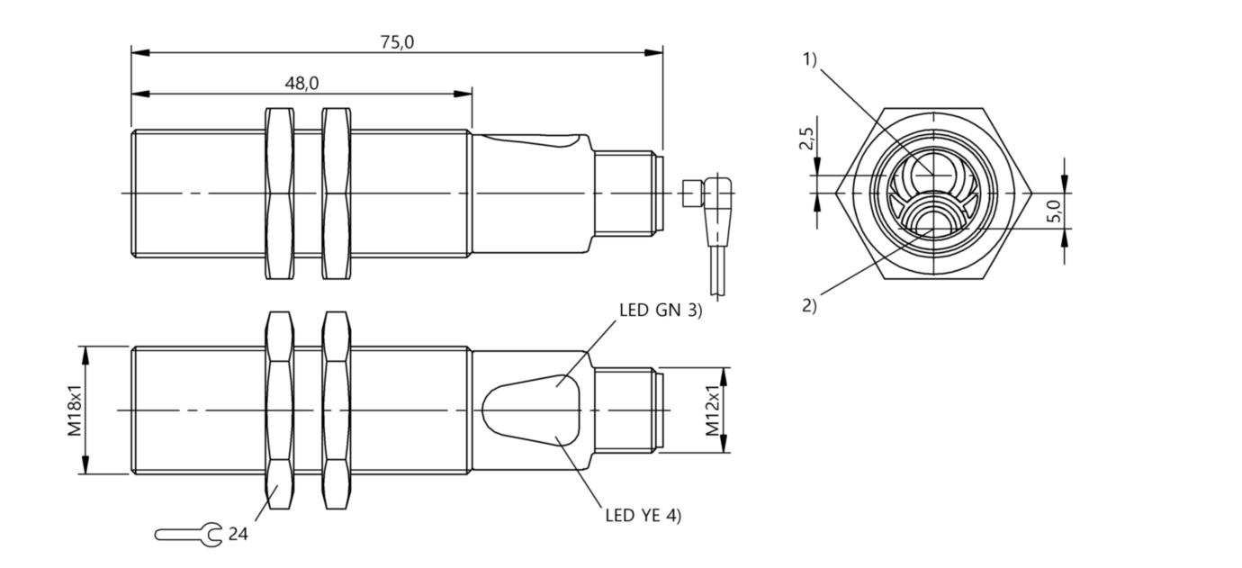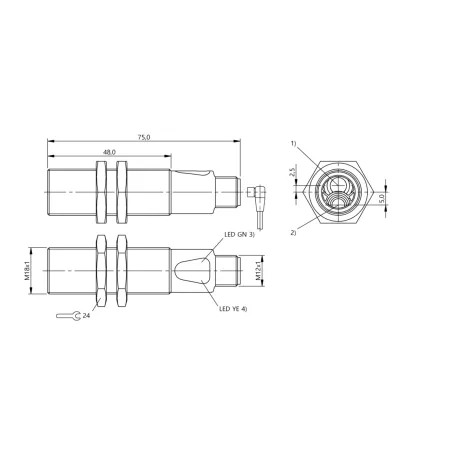 Дискретный выход: PNP • Диапазон измерения: 400 мм • Электрическое подключение: разъём M12x1 • Крепежная резьба: M18x1 • Рабочее напряжение: 12 ÷ 24 V DC • Материал корпуса: латунь