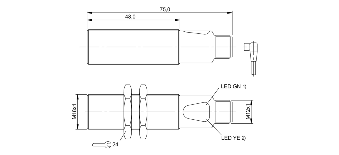 Дискретный выход: PNP • Диапазон измерения: 80 мм • Электрическое подключение: разъём M12x1 • Крепежная резьба: M18x1 • Рабочее напряжение: 12 ÷ 24 V DC • Материал корпуса: латунь