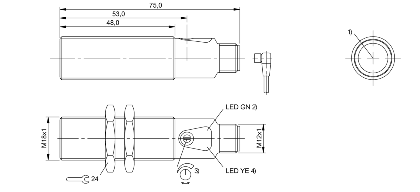 Дискретный выход: PNP • Диапазон измерения: 60000 мм • Электрическое подключение: разъём M12x1 • Крепежная резьба: M18x1 • Рабочее напряжение: 12 ÷ 24 V DC • Материал корпуса: латунь