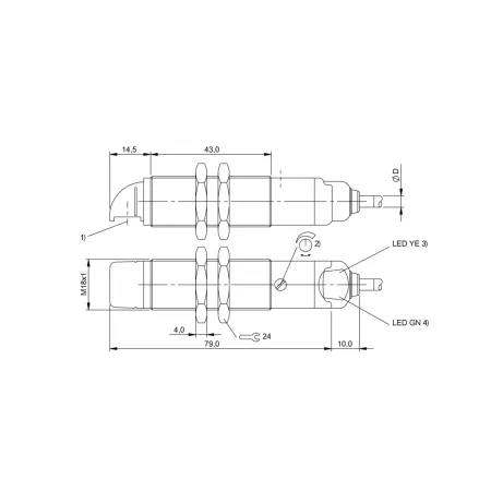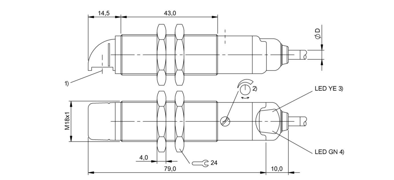 Дискретный выход: PNP • Диапазон измерения: 250 мм • Электрическое подключение: кабель • Длина кабеля: 2м • Крепежная резьба: M18x1 • Рабочее напряжение: 12 ÷ 24 V DC • Материал корпуса: латунь