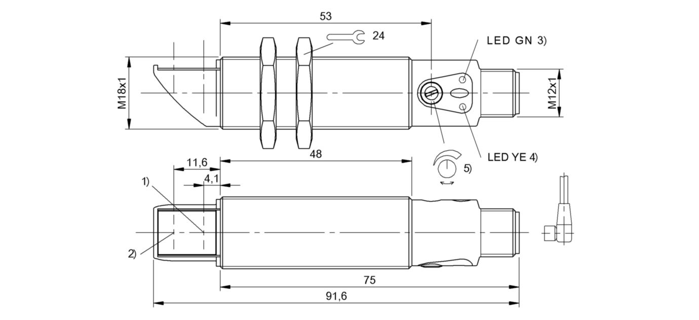 Диапазон измерения: 500 мм • Электрическое подключение: разъём M12x1 • Крепежная резьба: M18x1 • Рабочее напряжение: 12 ÷ 24 V DC • Материал корпуса: латунь