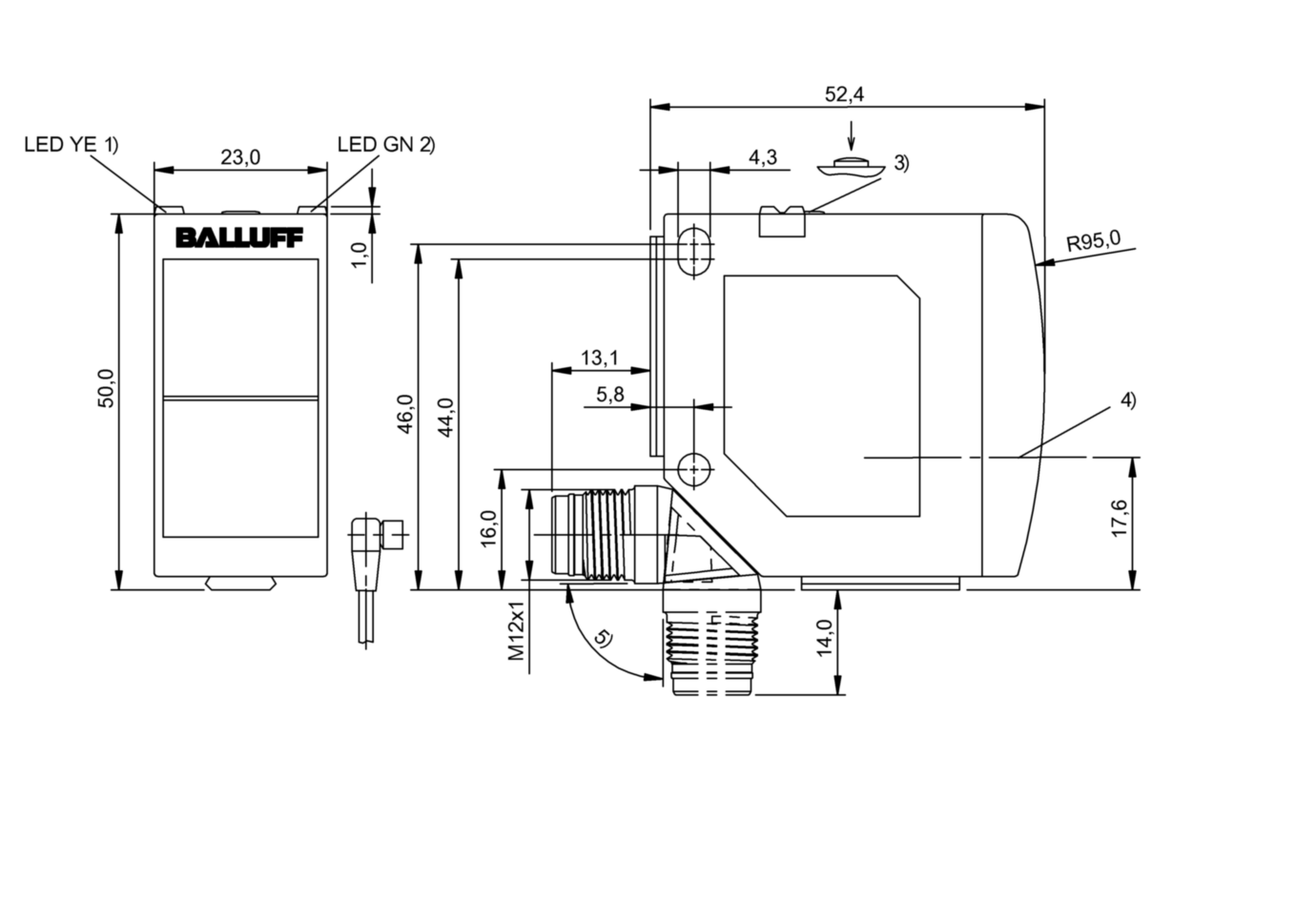BOS 23K-XI-RS11-S4 Balluff - Оптический датчик световой барьер: передатчик, до 20 м