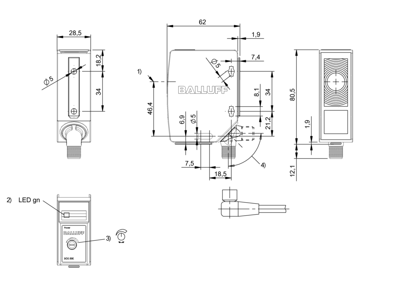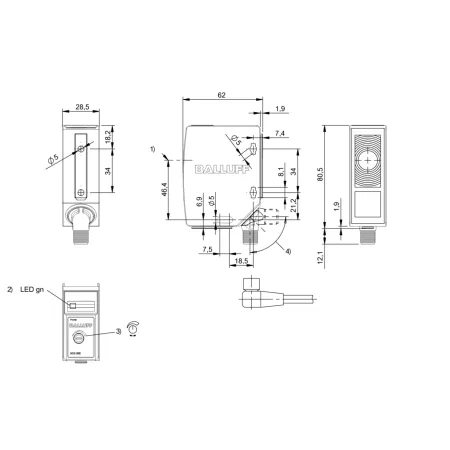 BOS 50K-X-RS10-S4 Balluff - Оптический датчик световой барьер: передатчик, до 60 м