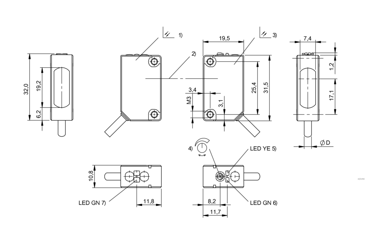 Дискретный выход: PNP • Диапазон измерения: 20000 мм • Электрическое подключение: кабель • Длина кабеля: 2м • Рабочее напряжение: 12 ÷ 24 V DC • Материал корпуса: пластик