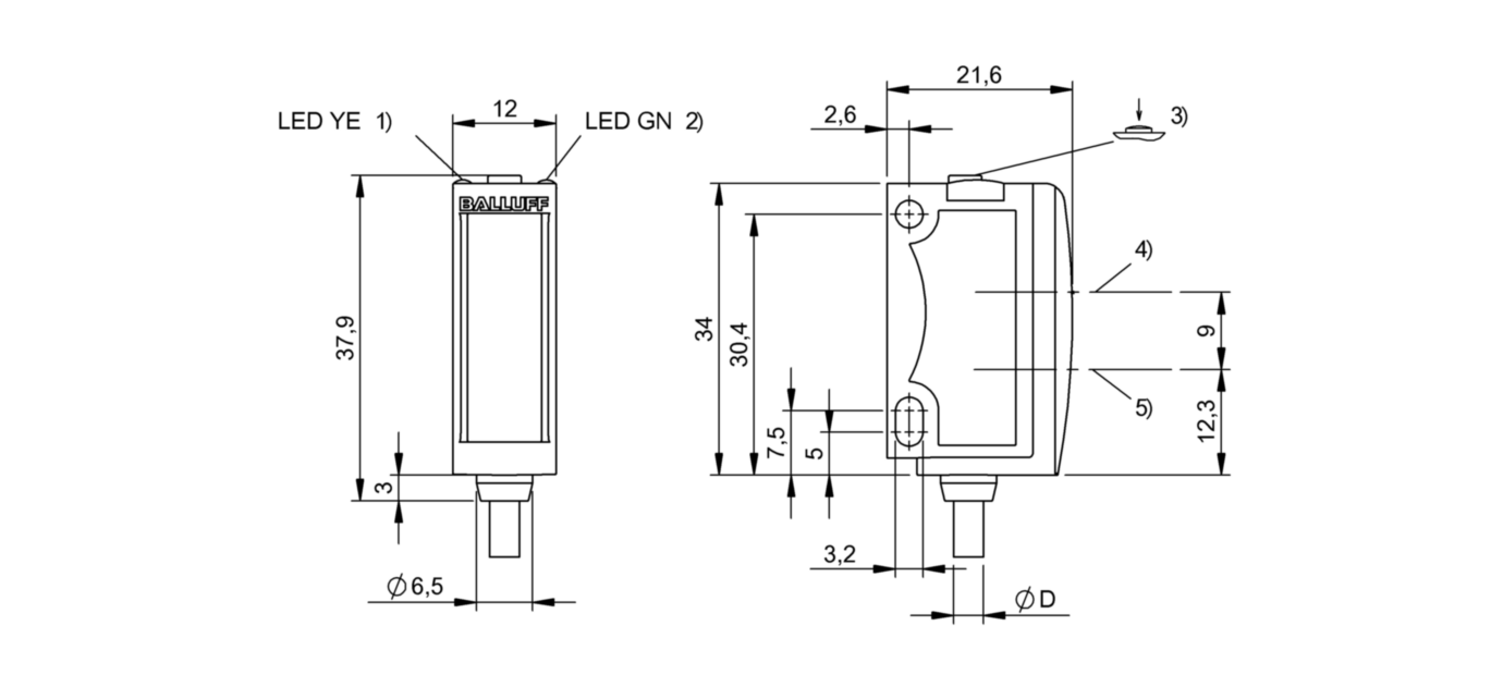 - датчик типа световой барьер: приемник
