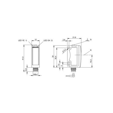 Диапазон измерения: 2000 мм • Электрическое подключение: разъём M8x1 • Рабочее напряжение: 12 ÷ 24 V DC • Материал корпуса: пластик