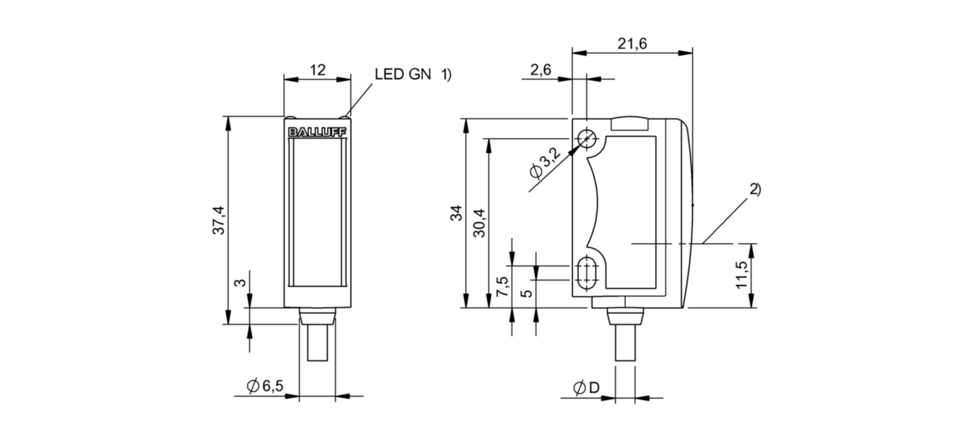 Диапазон измерения: 13000 мм • Электрическое подключение: кабель • Длина кабеля: 2м • Рабочее напряжение: 12 ÷ 24 V DC • Материал корпуса: пластик