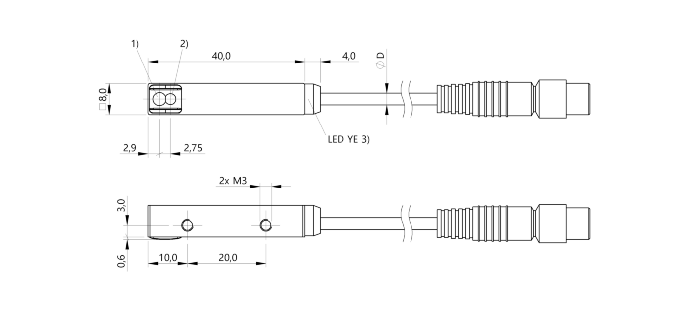 Дискретный выход: PNP • Диапазон измерения: 30 мм • Исполнение: с подавлением заднего фона • Электрическое подключение: разъём M8x1 • Длина кабеля: 0.2м • Рабочее напряжение: 12 ÷ 24 V DC • Материал корпуса: цинк