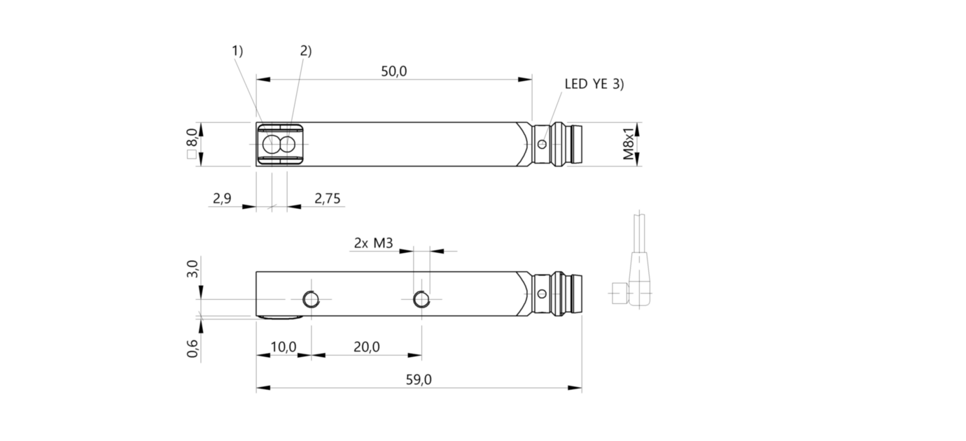 Дискретный выход: PNP • Диапазон измерения: 30 мм • Исполнение: с подавлением заднего фона • Электрическое подключение: разъём M8x1 • Рабочее напряжение: 12 ÷ 24 V DC • Материал корпуса: цинк