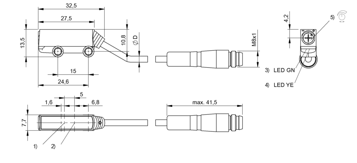 Дискретный выход: NPN • Диапазон измерения: 150 мм • Исполнение: с подавлением заднего фона • Электрическое подключение: разъём M8x1 • Длина кабеля: 0.2м • Рабочее напряжение: 12 ÷ 24 V DC • Материал корпуса: пластик