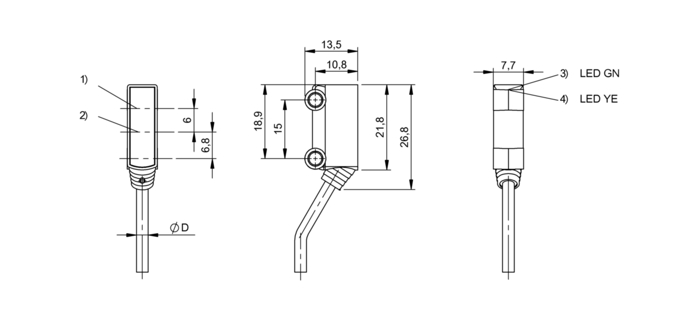 Дискретный выход: PNP • Диапазон измерения: 60 мм • Исполнение: с подавлением заднего фона • Электрическое подключение: кабель • Длина кабеля: 2м • Рабочее напряжение: 12 ÷ 24 V DC • Материал корпуса: пластик