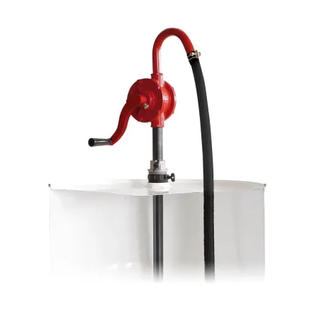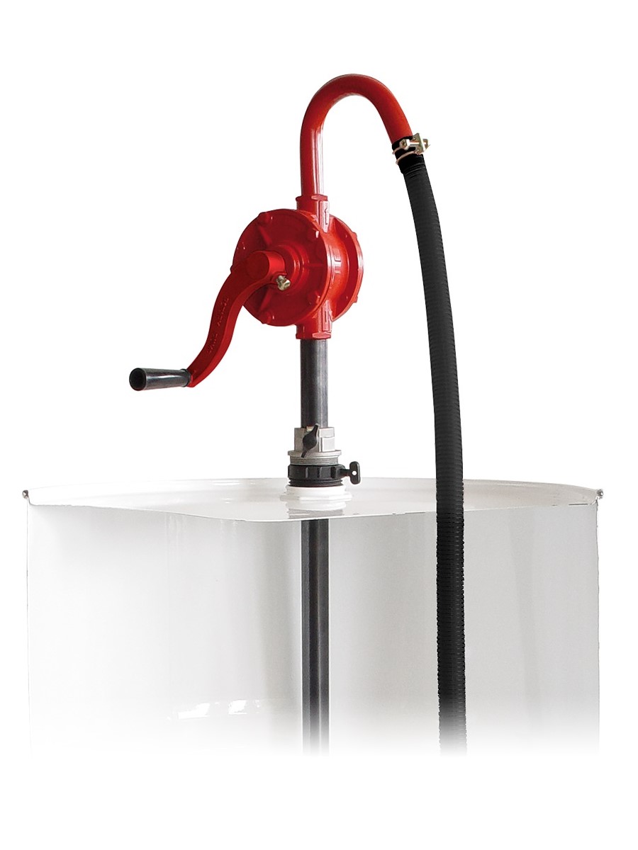 Ручной роторный лопастной алюминиевый насос для топлива и смазывающих материалов. Предназначен для установки на бочки 50 и 200 литров. Производительность насоса 20 литров на 70 оборотов. Диаметр всасывающей трубы - 32 мм. Диаметр подающего шланга - 25 мм.