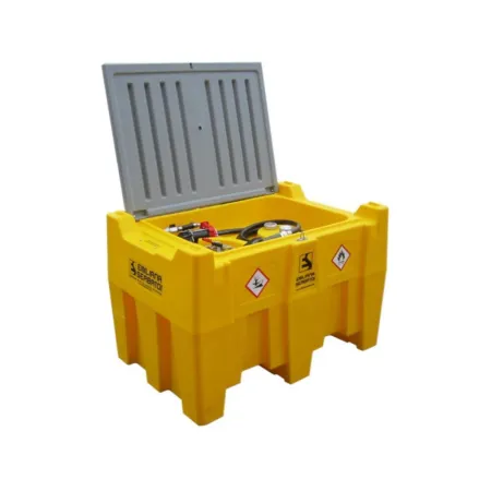 Резервуар для перевозки дизельного топлива из линейного полиэтилена изготовлен по технологии литейного производства, с закрывающейся на замок усиленной крышкой. Комплектация резервуара включает интегрированные вилочные карманы для поднятия полного объёма погрузчиком и ручки для поднятия пустого объёма, выемки для крепления транспортными ремнями при перевозке. Все фитинги изготовлены из материала совместимого с жидкостью.